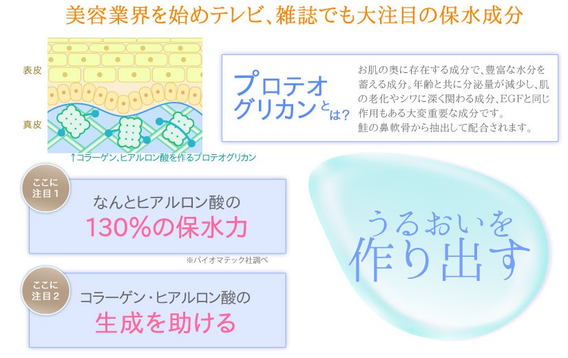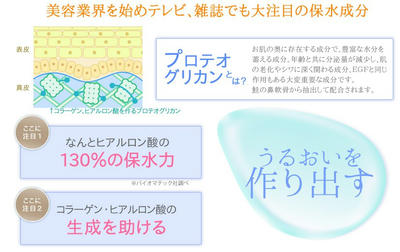 注目のスペシャル成分でエイジングケア ヴァリアージュ 2013年03月25日 保水やエイジングケア機能を持った成分で濃厚なケアを行う『ヴァリアージュ』の中で近年話題になっている貴重な成分があります。それはこれまで発見はされていたのですが、生成が非常に難しく幻の成分と言われていたのです。しかしこのヴァリアージュはその生成に成功して中に配合する事が出来るようになったのです。その成分が「プロテオグリカン」と呼ばれる成分です。この成分は保水機能はヒアルロン酸の130%に達し、体内エイジングケアEGFと類似機能を持っておりしかも体内コラーゲンを生成する助けを行う機能まで有しているのです。まさにハイクオリティなエイジングケア成分と言える訳なのです。シミやシワなどの目元のエイジングケアを行うエースのようなこのプロテオグリカンを有しているこのヴァリアージュによってシワ面積の減少を自らも是非体験してみてください~! ↓