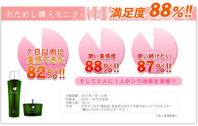 使った人がシワに効果を体感 ヴァリアージュ 2013年04月02日 モニターさんの満足度が高いというのはどういった化粧品やスキンケアでの広告にもありますが、「しわ改善を実感」した人が2人に1人というその多さは他のなんちゃって広告には真似出来ない事だと思います。これもヴァリアージュがしっかりとその保水成分とエイジングケア機能を持った成分にコダワリを持っているからなのですね~!そして「しわ面積率の減少」を第三者機関に評価されるというしっかりとした実績まで積み上げる事になったのですね。そんなヴァリアージュなのでこのように↓モニターさんの評価も非常に高い物となっている訳なのですね!目元のエイジングケアを本格的に行いたいという場合には、必須の潤い成分とエイジングケア機能をもっているこのヴァリアージュを一度試してみませんか? ↓