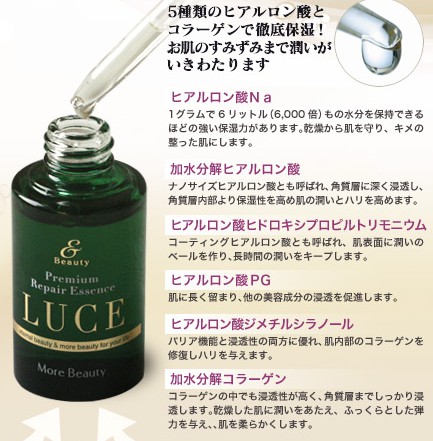 保湿も濃厚なルーチェ ルーチェ 2013年06月06日 濃厚なエイジングケアがソレ一つで行えてしまうという事で今話題になっている『プレミアムエッセンス ルーチェ』は保湿機能に関しても非常に際立っています。例えばヒアルロン酸ですがこのルーチェの中には5種類も入っているのでその働きも多様です。例えば保湿機能を強化するだけでは無くしっかりと潤いがお肌の奥に浸透する手助けまで行える訳ですね。それだけでは無く、それら浸透した成分をお肌にしっかりと長くキープさせる機能を持ったヒアルロン酸もある為に『より濃厚な保湿ケア』が行える訳ですね!そして勿論潤い成分はヒアルロン酸だけでは無く「アロエベラ液汁」「白樺エキス」など天然系素材で保湿に定評がある成分もしっかりと配合されているのですから潤いキープに関してはこれ以上無い程の濃密ケアが堪能出来る訳ですね~!ルーチェでシミやシワなど目元のエイジングケアを濃厚な成分で行ってはみませんか?さらなる詳細はこちらより PR